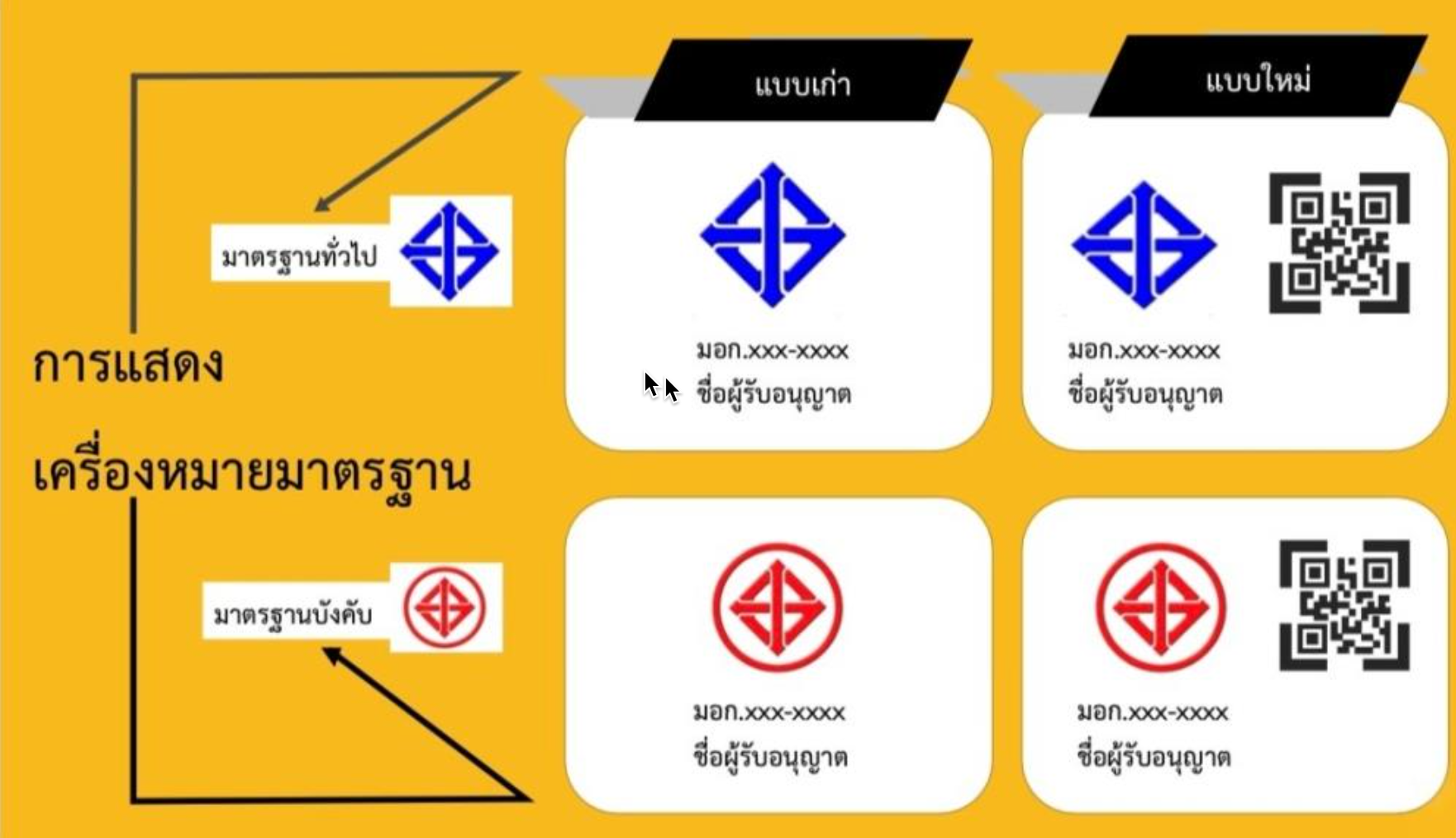 สำนักงานมาตรฐานผลิตภัณฑ์อุตสาหกรรม (สมอ.) กล่าวเพิ่มเติมว่า ปัจจุบันมีผู้ประกอบการที่ได้รับใบอนุญาตจาก สมอ. ทั้งที่เป็นผู้ทำในประเทศ และผู้นำเข้ากว่า 10,000 ราย จำนวนใบอนุญาตกว่า 80,000 ฉบับ ครอบคลุม 750 มาตรฐาน ซึ่งตาม พ.ร.บ.มาตรฐานฯ และกฎกระทรวงฉบับใหม่ กำหนดให้ผู้รับอนุญาตทุกรายจะต้องแสดงรายละเอียดข้อมูลในใบอนุญาต และข้อมูลเกี่ยวกับสินค้าที่ได้รับใบอนุญาตในรูปแบบอิเล็กทรอนิกส์ คู่กับเครื่องหมายมาตรฐานที่สินค้าด้วย สมอ. จึงได้จัดทำเป็น QR Code เพื่อให้ผู้รับอนุญาตนำไปแสดงบนสินค้าที่ได้รับใบอนุญาต ซึ่งจะทำให้ประชาชนสามารถตรวจสอบรายละเอียดของสินค้าได้ง่ายๆ เพียงสแกน QR Code ก่อนตัดสินใจซื้อ รวมทั้ง เป็นข้อมูลในการตรวจสอบหรือร้องเรียนในกรณีที่สินค้าไม่เป็นไปตามมาตรฐานตามที่ระบุไว้
